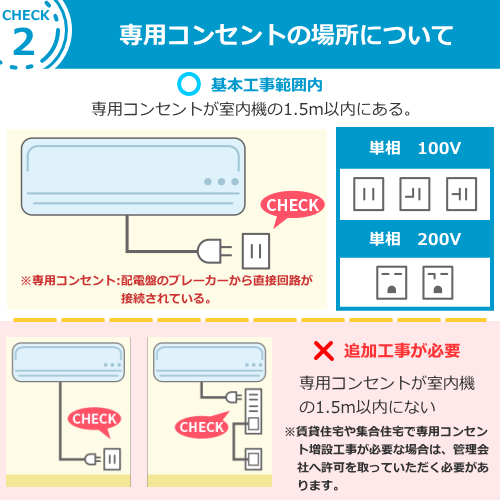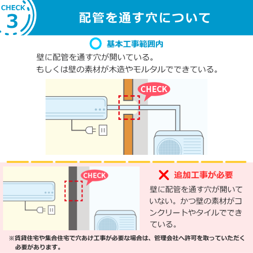 こちらの工事はルームエアコン用となります。業務用、パッケージエアコンについては別途費用がかかります。