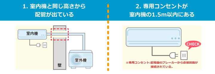 既設エアコンの取外しは工事内容に含まれておりません。