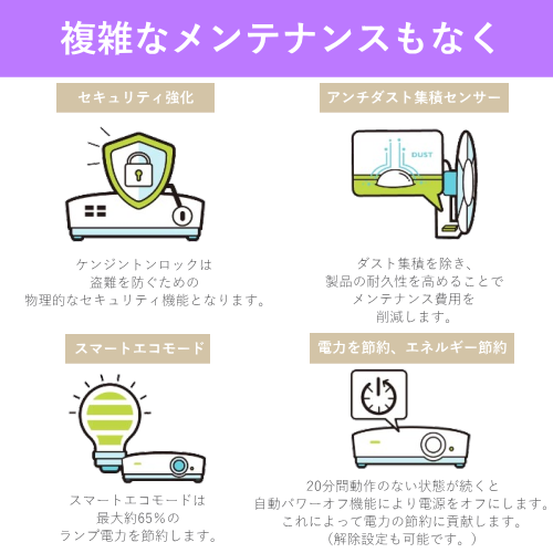 標準 5000時間、エコ 10000時間、スマートエコ 10000 時間、ランプセーブ 15000 時間
