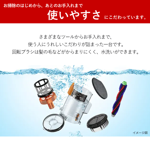 回転ブラシ:ワンタッチ着脱、水洗い対応、モーター駆動方式、からまんブラシ、2アングル形状