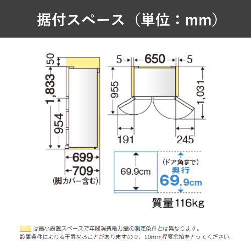 幅650x高さ1833x奥行699(脚カバー含む:709) mm