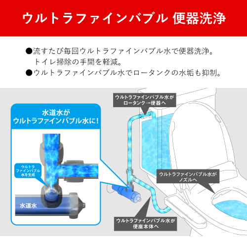 ウルトラファインバブル 便器洗浄(ウルトラファインバブル水で便器を洗浄):〇