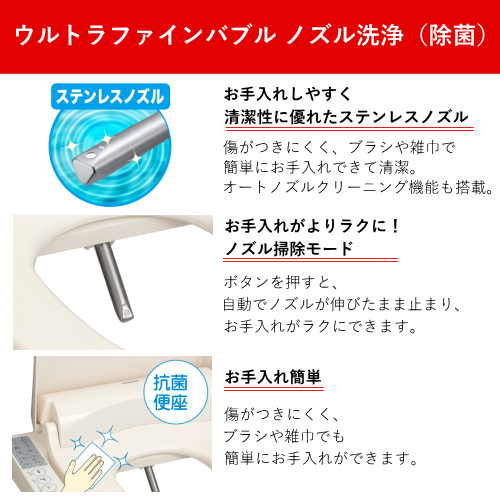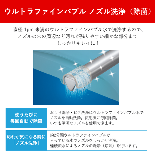 ウルトラファインバブル ノズル洗浄モード(除菌):〇