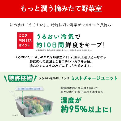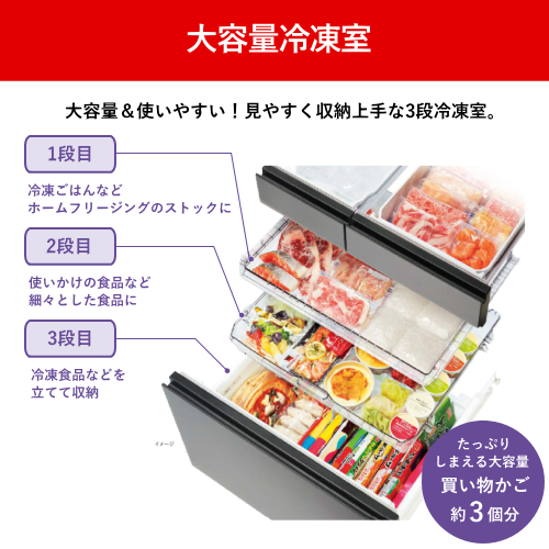 野菜室:110L〈66L〉/ 製氷室:18L〈7L〉