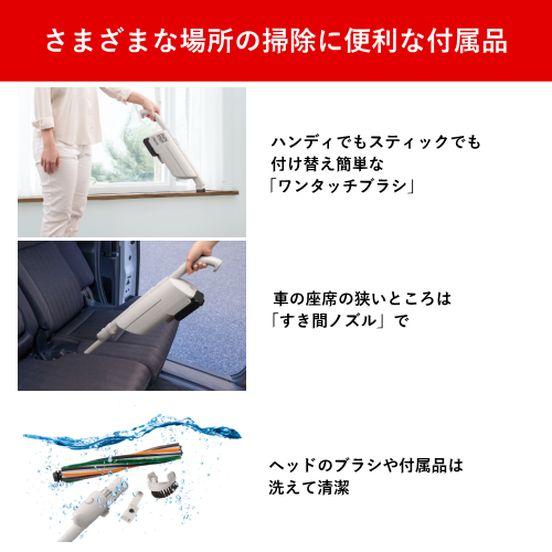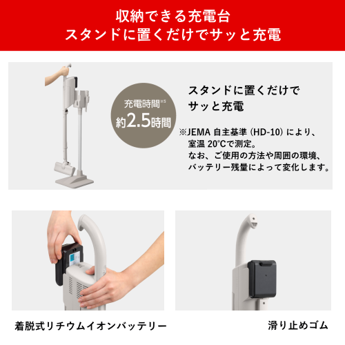 【付属品】充電スタンド、ワンタッチブラシ、すき間ノズル、紙パック(VPF-31)1枚