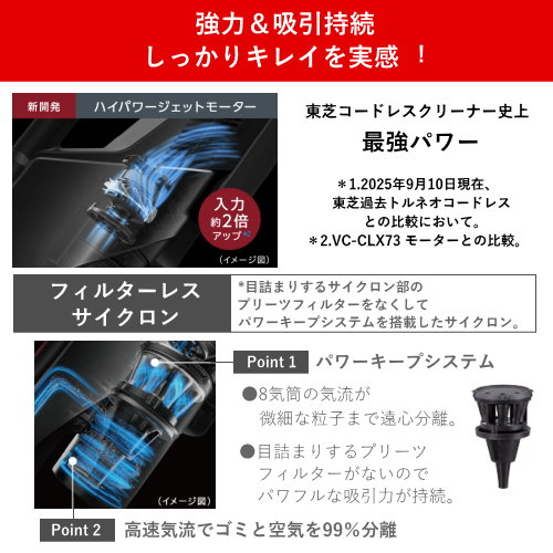 *目詰まりするサイクロン部のプリーツフィルターをなくしてパワーキープシステムを搭載したサイクロン。