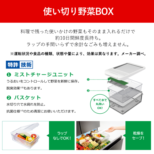 野菜室:119L〈74L〉/ 製氷室:21L〈8L〉