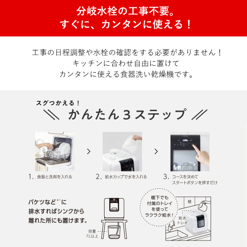 排水ホース(1.5m)、給水トレイ、保証書付き取扱説明書