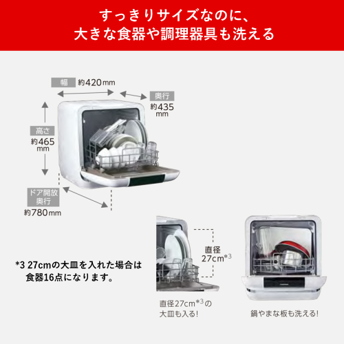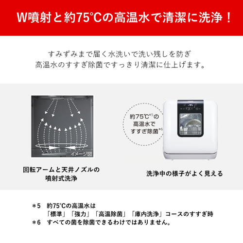 【洗浄方式】回転スプレーアーム噴射式+天井ノズル噴射式