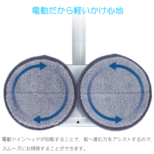 電動ツインヘッドが回転することで、前へ進む力をアシストするので、スムーズにお掃除することができます。