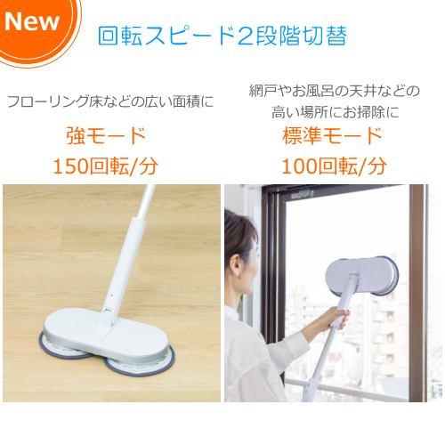 ・標準モード(100回転/分):網戸やお風呂の天井などの高い場所のお掃除に