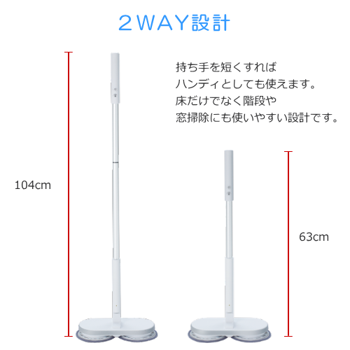 持ち手を短くすればハンディとしても使えます。床だけでなく階段や窓掃除にも使いやすい設計です。