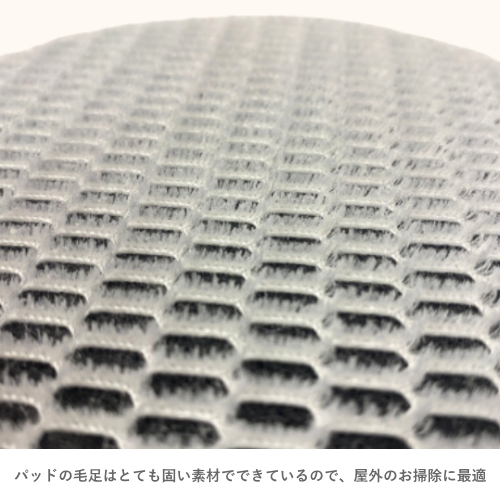 パッドの毛足はとても固い素材でできているので、屋外のお掃除に最適。