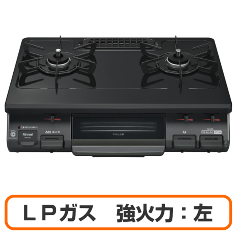 Rinnai リンナイ RTE597BKL(LPG) ガスコンロ グリル付きガステーブル LPガス用 強火力:左 幅約60cm ブラック 送料無料(沖縄県・離島除く)