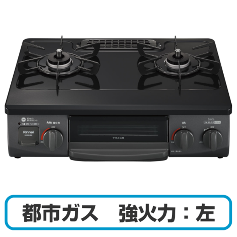 Rinnai リンナイ KG35NBKL 13A ガスコンロ グリル付きガステーブル 都市ガス用 強火力:左 幅約56cm ブラック 送料無料(沖縄県・離島除く)