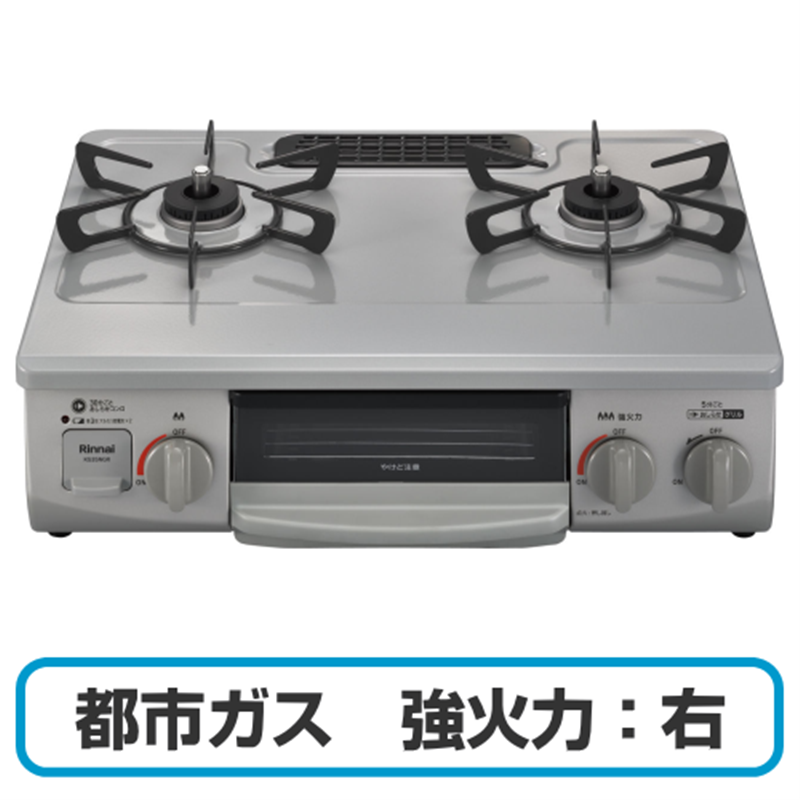Rinnai リンナイ KG35NGRR 13A ガスコンロ グリル付きガステーブル 都市ガス用 強火力:右 幅約56cm スカイグレー 送料無料(沖縄県・離島除く)