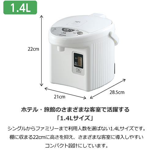 ◎ホテル・旅館のさまざまな客室で活躍する「1.4Lサイズ」