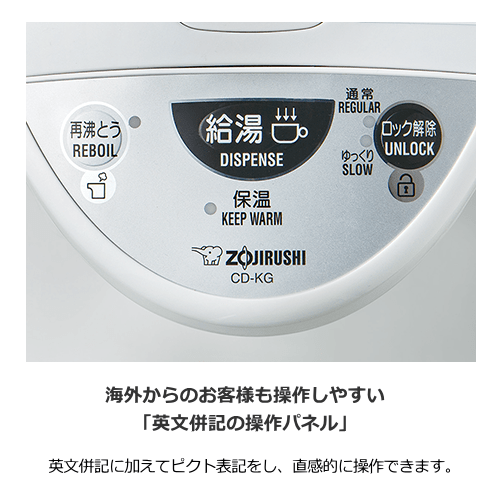 ◎海外からのお客様も操作しやすい「英文併記の操作パネル」