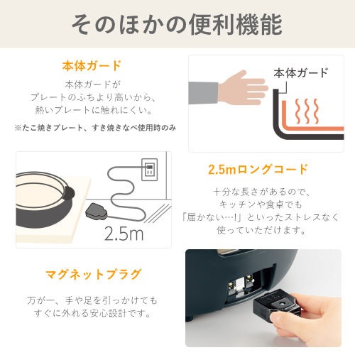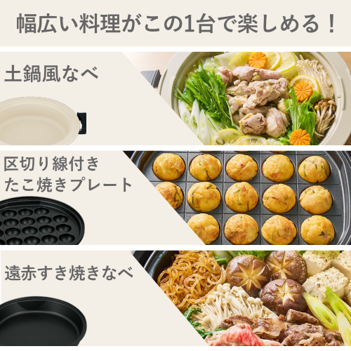 【付属プレート】たこ焼きプレート、すき焼きなべ、土鍋風なべ