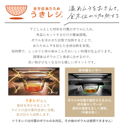 【レンジ】自動出力:1,000W 最大約3分間(600W)