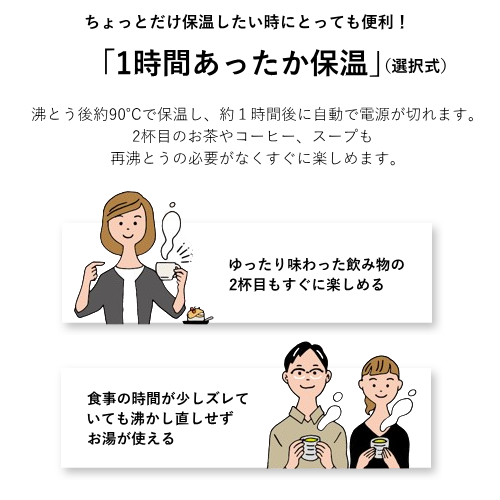 満水1.0L=約5分(室温23℃・水温23℃・定格消費電力、メーカー調べ)