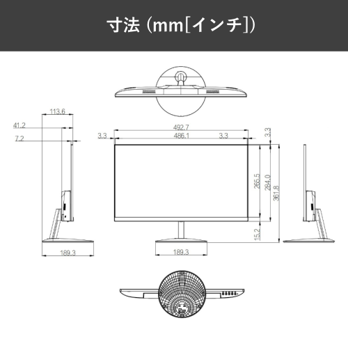 主な仕様 ディスプレイサイズ 21.45インチ パネル種類/タイプ VA パネル / LEDバックライト アスペクト比 16:9 解像度/表示色(最大) 1,920×1,080(フルHD)/1670万色 コントラスト比 3000 : 1 輝度(最大) 250 nit 視野角 178°(水平)/178°(垂直) 応答速度 5ミリ秒 スピーカー なし 電源 DC 12 V、2 A 傾斜角度 - 5° ± 2° / 15° ± 2° VESA 75 x 75(mm) その他機能 ブルーライト低減機能 接続端子 HDMI 1.4 × 1、VGA × 1 消費電力 最大:24W/待機時:0.5W以下 外形寸法 幅 492.7 x 高さ 284.0 x 奥行41.2mm(スタンドを除く) 質量 2.05 kg 付属ケーブル HDMI 1.4ケーブル、アダプター、スタンド、その他 メーカー保証 3年間